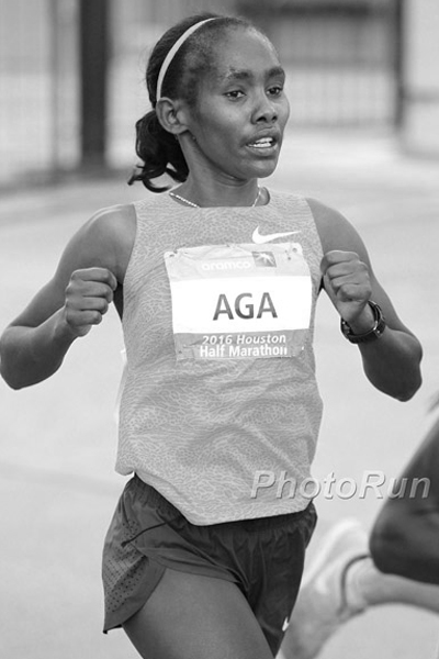 Ruti Aga says a pivotal moment in her career was winning the 2015 Lisbon Half Marathon in a very competitive field. From there she knew she was ready for the marathon and made her marathon debut in Vienna, finishing second in 2:25:27. She followed that performance with a third-place finish in Berlin. Her half marathon best was recorded last year at the Houston Half Marathon (fourth, 1:08:07). As a junior, she won the silver medal in the 5,000m at the 2012 IAAF World Junior Championships and placed fifth at the 2013 IAAF World Cross Country Championships. The following year she won the 5,000m at the Reduit African Junior Championships.